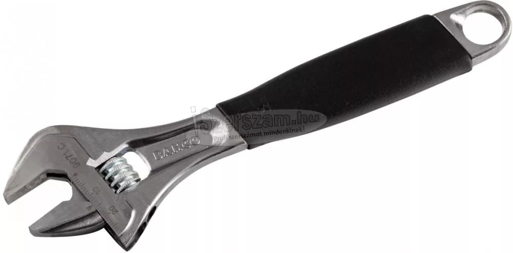 Állítható csavarkulcs 12 " , krómozott, max. SW 34mm. Az ERGO ™ folyamat részeként kifejlesztett villáskulcs. ISO 6787, DIN 3117, ASME B107.8M-1996 és BS 6333. Nagy teljesítményű acél ötvözet. Kényelmes és csúszásmentes fogantyú hőre lágyuló anyagból. Az előbeállításhoz és pontos méréshez alkalmas mm skála. A pofa teljes kinyitáskor sem esik ki. A fej 15 ° -os szöget zár be a jobb elérhetőség érdekében. Balra csavarodó csavarok. P sorozat: megfordítható állkapocs csöveken történő alkalmazáshoz. Krómozott, precíziósan edzett és rozsdakezelt.