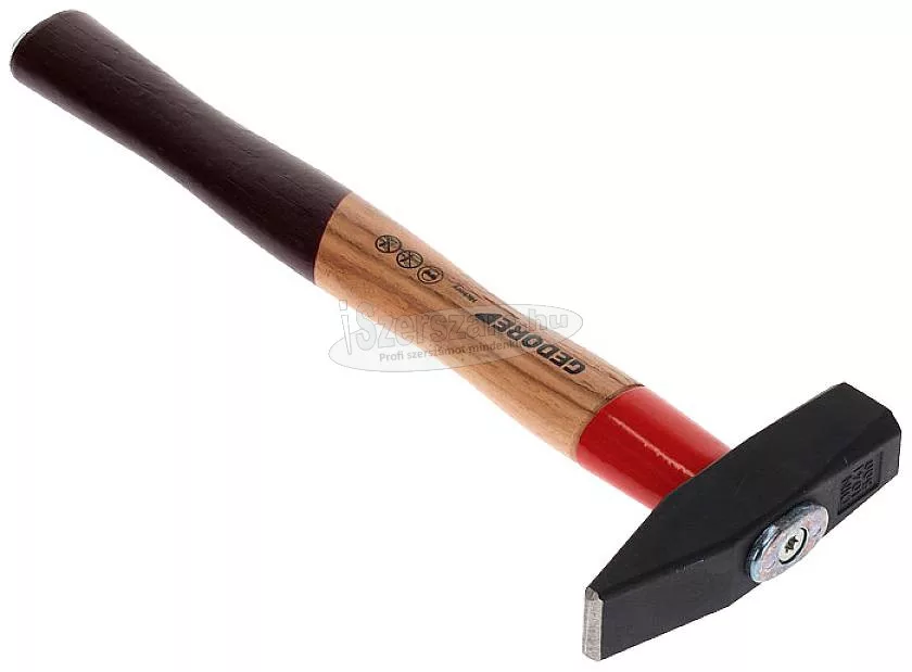 Javító kalapács ROTBAND-PLUS 500 g. Kovácsolt kalapácsfej a DIN 1041 szerint. Kettős hajlított hickory szár, további hosszú, edzett acél szárvédő hüvely. A gyűrű ék, a rögzítőlemez és a fa csavar a kalapácsfejet és a fa fogantyút egy egységké alakítja.