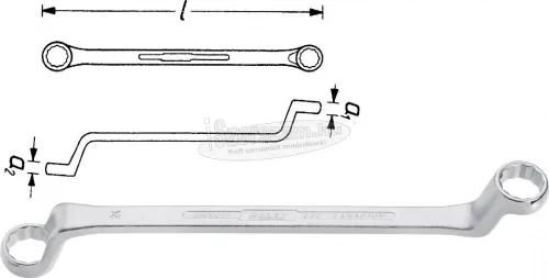Kettős csillagkulcs, laptáv: 12 mm, laptáv: 13 mm. Mélyen derékszögben eltolva.