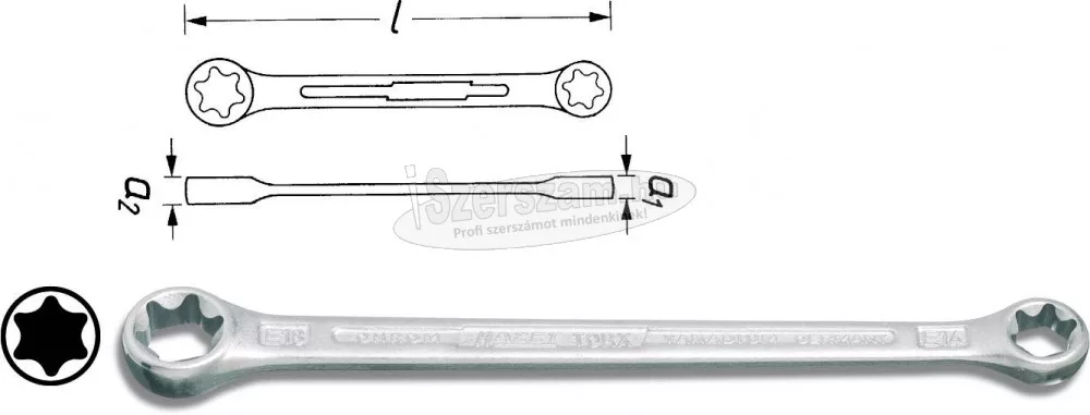 TORX® kettős csillagkulcs, laptáv: E6, laptáv: E8. Kettős csillagkulcs külső TORX® csavarokhoz.