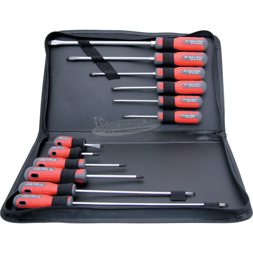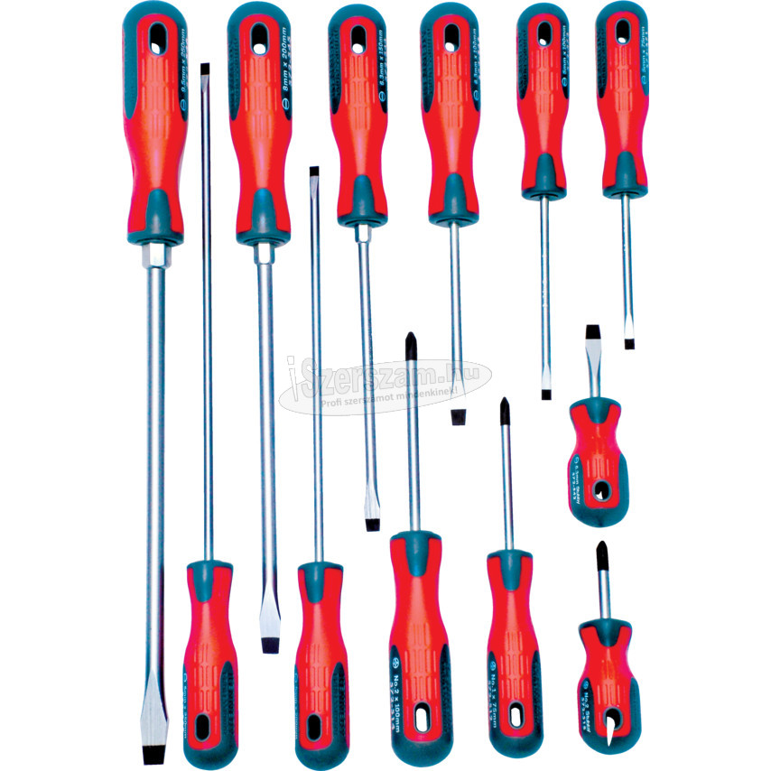 KENNEDY 12 DB-OS PRO-TORQ CSAVARHÚZÓ KÉSZLET KEN5726040K. Speciális króm-vanádium acélból készült penge mágneses éllel. Egyedülálló, háromszög keresztmetszetű, két komponensű erős markolat. A beépített puha zónák megkönnyítik a nyomaték átvitelét. Tárolást könnyítő akasztó lyukkal a markolat végén.