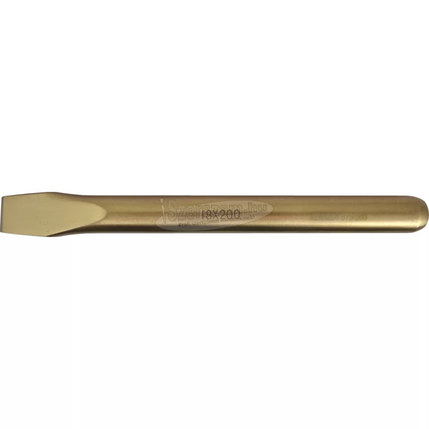 KENNEDY 18X200mm SZIKRAMENTES LAPOS HIDEGVÁGÓ KEN5752060K. A szikramentes szerszámokat azért használják, hogy kizárják a véletlen tüzek vagy robbanások keletkezésének esélyét a tűz-vagy robbanásveszélyes munkahelyeken. Ezek a szerszámok a normál kivitelű szerszámokkal ellentétben nem képeznek szikrát kemény felülethez történő ütés következtében. A szikramentes szerszámok használata alapvetően fontos sok ipari alkalmazásnál, úgymint vegyipar, olajipar, festékszóró fülkékben végzett műveletek, hajózással kapcsolatos ipari műveletek, bányászat, papírgyártás, vagy bármely más olyan munkaterület, ahol gyúlékony gőzök vagy tűzveszélyes maradványanyagok vannak jelen. Az alu-bronz szikramentes biztonsági szerszámok keménysége 25 HRC, szakítószilárdságuk 75-85 kp/mm2. A szikramentes biztonsági szerszámok karbantartását nagy körültekintéssel kell végezni, rendszeres időközönként szükséges tisztítani/újraélezni, hogy eltávolítsuk az esetlegesen rárakódott vastartalmú anyagokat vagy más szennyeződéseket, melyek ronthatják a szerszámok használati értékét.