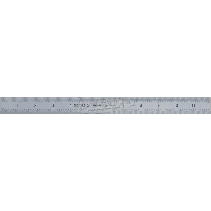 KENNEDY 300MM/12" MEREV ROZSDAMENTES VONALZÓ SZÖGLETES VÉGGEL KEN5183320K. Kiváló minőségű rugalmas megeresztett rozsdamentes acél. Matt krómozott kivitel, kopásálló fekete skálabeosztás és számok. Könnyen leolvasható. A teljes hosszra vonatkozó pontosság: ±0.2 mm. Rozsdamentes.
