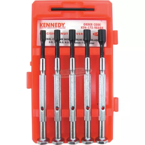 KENNEDY 5 DB-OS KÉSZLET 3.0-5.0mm DUGÓKULCS CSAVARHÚZÓ NYÉLLEL KEN5729888K. Minőségi választék kisméretú csavarhúzókókból. Kombinált készletek szerszámai szénacélból ké­szülnek (csipeszek rozsdamentes acélból). Csak behajtókat (csavarhúzó, hatszög, dugófej) tartalma­zó készletek pengéi nikkel-króm-molibdénnel ötvözött acélból készülnek.