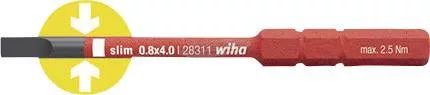 VDE cserélhető bit penge. A keskeny kivitelnek köszönhetően könnyen elérhetők és mozgathatók a mélyen található csavarok, rugók. Főbb jellemzők: Keskeny kivitel. Kivitel: Kiváló minőségű króm-vanádium-acél edzett penge, barnított. Fröccsöntött szigetelések közvetlenül a biten.
