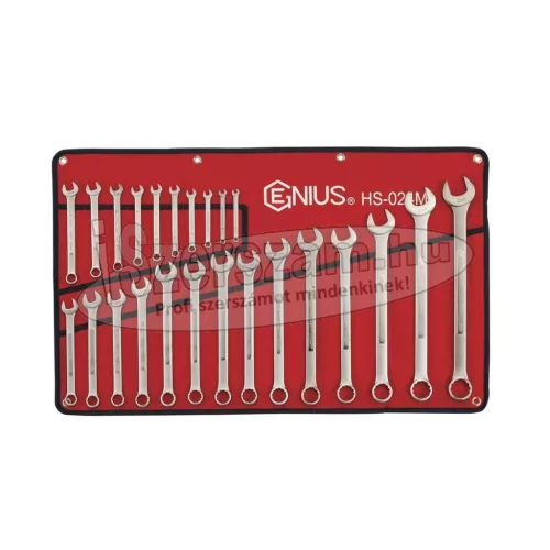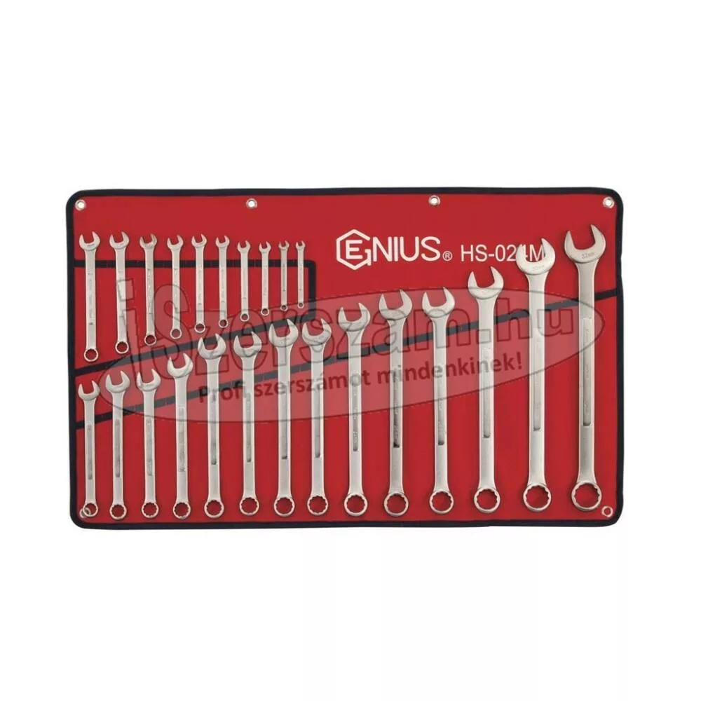 Genius Tools - Canada Csillag-villáskulcs készlet 24 darabos kiszerelésben, összegöngyölt falra akasztható szövet tárolóban. A villáskulcs vége 15°-kal horizontálisan, a csillagkulcs vége 15°-kal vertikálisan döntött. Tulajdonságok: Anyaga: Chrome Vanadium Acél Hosszúság: 102-430 mm Méretek: 6,7,8,9,10,11,12,13,14,15,16,17,18,19,20,21,22,23,24,25,26,27,30,32 mm Súly: 6 kg.