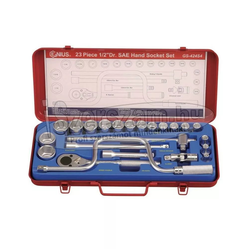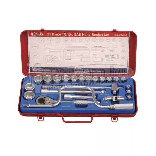 GENIUS TOOLS Dugókulcs készlet 1/2" 6 lapú COLOS 5/16"-1-1/4" 23 részes Genius (GS-424S4) .