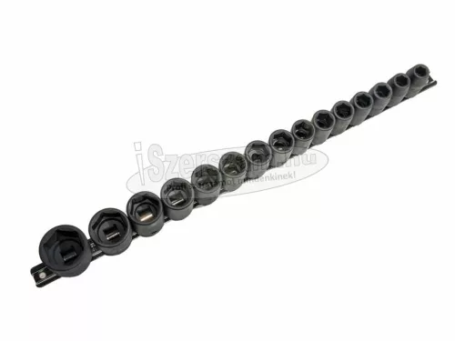 - 15 db légkulcsfej; méret: 10, 11, 12, 13, 14, 15, 16, 17, 18, 19, 21, 22, 24, 27, 30 mm
