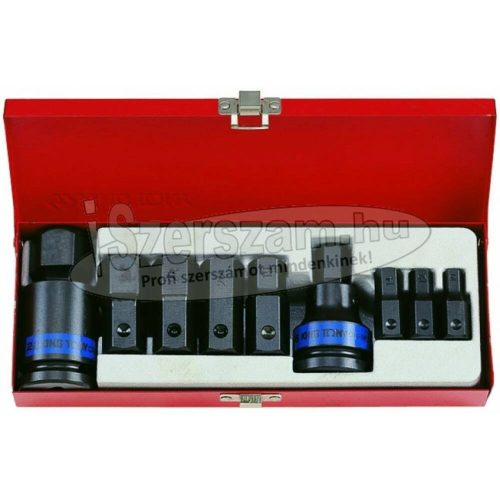 Kiung Tony Légkulcsfej készlet, imbusz, metrikus 3/4" 11 darabos készlet fém tároló dobozban. Tartalma: - 1 db 3/4"-os befogó 16 mm-es bitekhez - 1 db 10 mm-es imbusz bit - 1 db 12 mm-es imbusz bit - 1 db 14 mm-es imbusz bit - 1 db 17 mm-es imbusz bit - 1 db 3/4"-os befogó 22 mm-es bitekhez - 1 db 19 mm-es imbusz bit - 1 db 22 mm-es imbusz bit - 1 db 24 mm-es imbusz bit - 1 db 27 mm-es imbusz bit - 1 db 32 mm-es imbusz bit Teljes hosszúságok. - 16 mm-es 3/4" befogó + bit együttesen: 78 mm - 22 mm-es 3/4" befogó + bit együttesen: 93 mm Anyag:Króm-molibdén acél. Meghajtás:3/4" Súly: 2,75 kg Fém doboz mérete: 270 x 100 x 50 mm.