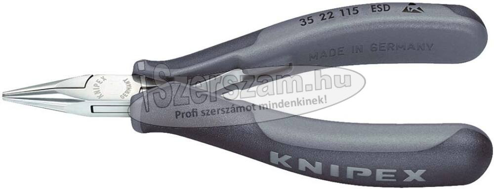 KNIPEX Elektronikai kerekcsőrű fogó, ESD 115mm 3532 115 ESD. Elektronikai fogó, precíziós, kétkomponensű nyél, egyenes, ESD.