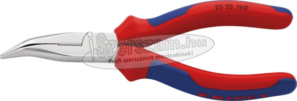 KNIPEX félkerekcsőrű fogó hajlított, krómozott fej, kétkomponensű nyél 160mm, 40°, vágóéllel 2 525 160