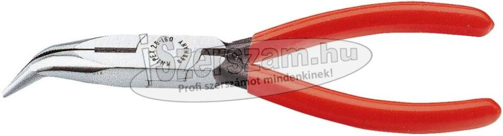 KNIPEX félkerekcsőrű fogó hajlított, polírozott fej, PVC nyél 160mm, 40°-os, vágóéllel 2 521 160