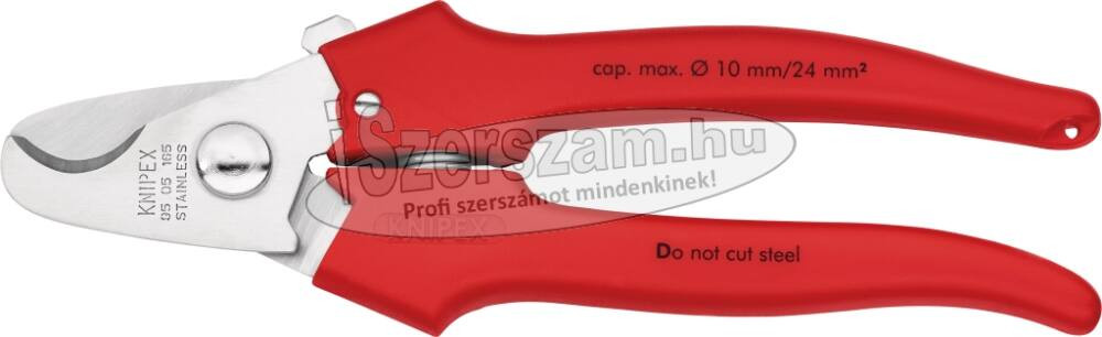 KNIPEX Kábelvágó olló, PVC nyél 165mm, d=10/24mm², AWG 3 9 505 165. Kábelvágó olló, PVC nyél, KNIPEX.