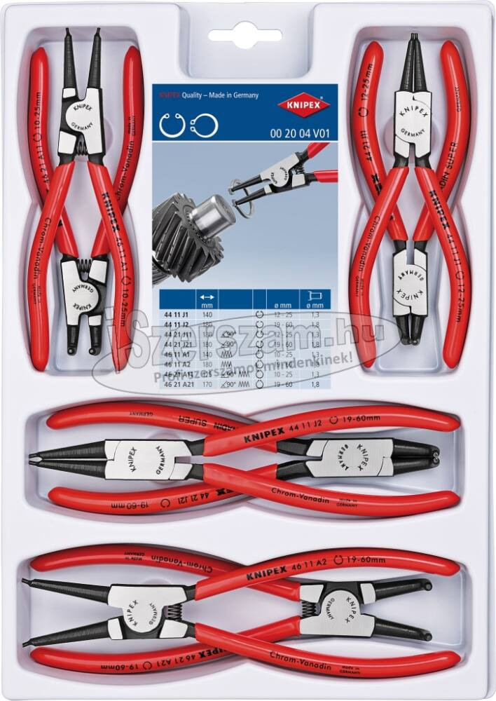 KNIPEX Seegergyűrű fogó készlet K-BE 8 részes J1-J21/A1-A21, 10-25/19-60mm 0020 04 V01