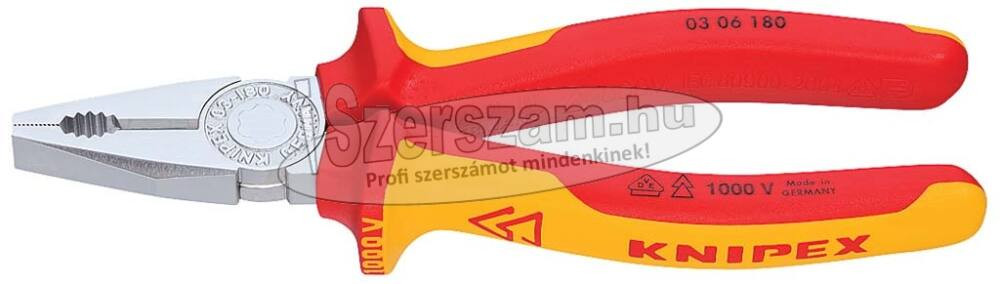 KNIPEX Szigetelt egyetemes fogó, kétkomponensű nyél 1000V 160mm 306 160. Szigetelt egyetemes fogó, kétkomponensű nyél 1000V, Knipex.