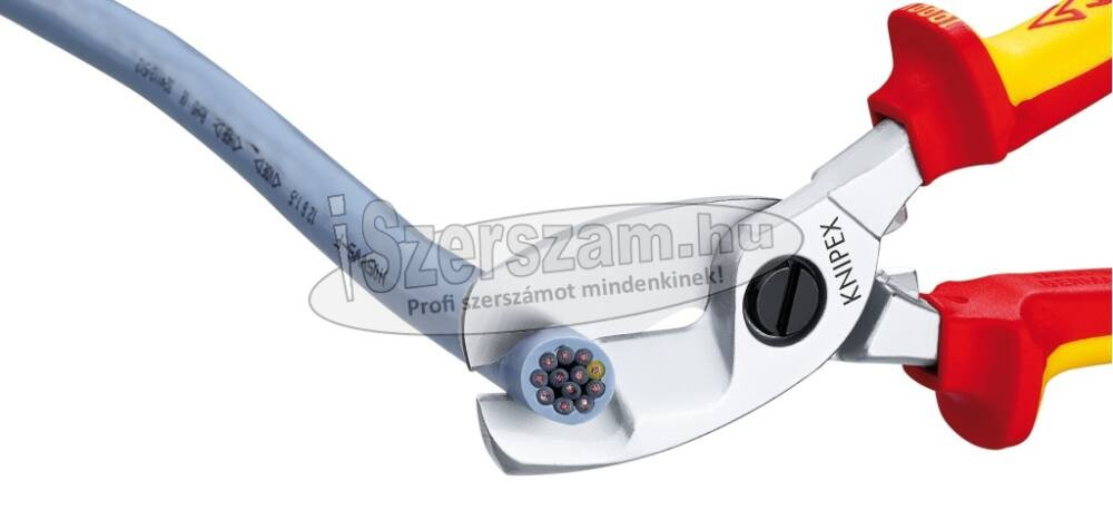 KNIPEX Szigetelt kábelvágó olló, kétkomponensű nyél 1000V 200mm, d=20/70mm² 9 516 200. Szigetelt kábelvágó olló, kétkomponensű nyél 1000V.
