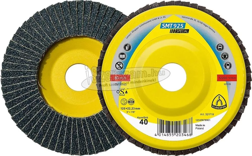 Professzionális, ipari minőségű Klingspor Lamellás csiszolótányér SMT 925 SPECIAL 125x22,23mm k80 egyenes .