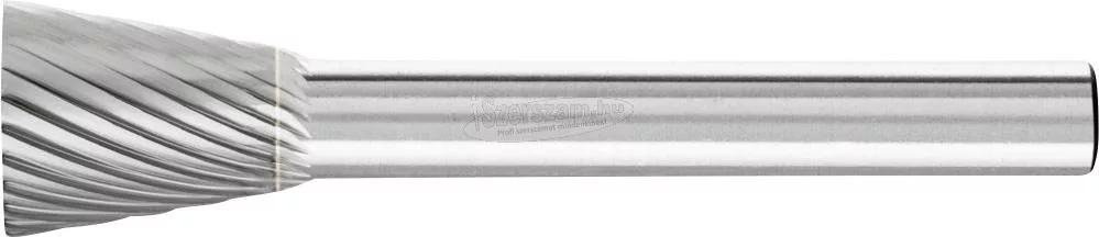 PFERD sorja. A csonka kúpos sorja a DIN 8032 szerinti kúpos szár felé keskenyedik, a DIN 8033 szerinti fogazás mellett. Alkalmas nehezen elérhető hátsó élek megmunkálására. Meghajtótípusok:. - Rugalmas tengelyhajtás. - egyenes daráló. - Helyhez kötött gépek. - Robotok. - szerszámgép. Alkalmazás:. - sorjázás. - marás. - Szélfeldolgozás. - letörés. - Csökkentse. Ajánlott felhasználás:. - A rendelkezésre álló fogazat tulajdonságairól a 12. oldalon talál információt. Anyag:. - Kemény alumíniumötvözetek. - Puha alumíniumötvözetek. - Kemény színesfém. - bronz. - Puha színesfém. - réz. - Sárgaréz. - cink. - rozsdamentes acél (INOX). - öntöttvas. - Szürke / csomós öntöttvas (GG / GJL, GGG / GJS). - Képlékeny öntöttvas. - Fém alakítható öntöttvas (GTS, GJMB). - Fehér temperöntvény (GTW, GJMW). - Acél, öntött acél. - Edzett, edzett és edzett acélok 1200 N / mm2 felett (38 HRC felett). - Tok keményedő acélok. - szerszámacélok. - Stóla. - Acélok 1200 N / mm2 -ig (<38 HRC). - öntött acél.