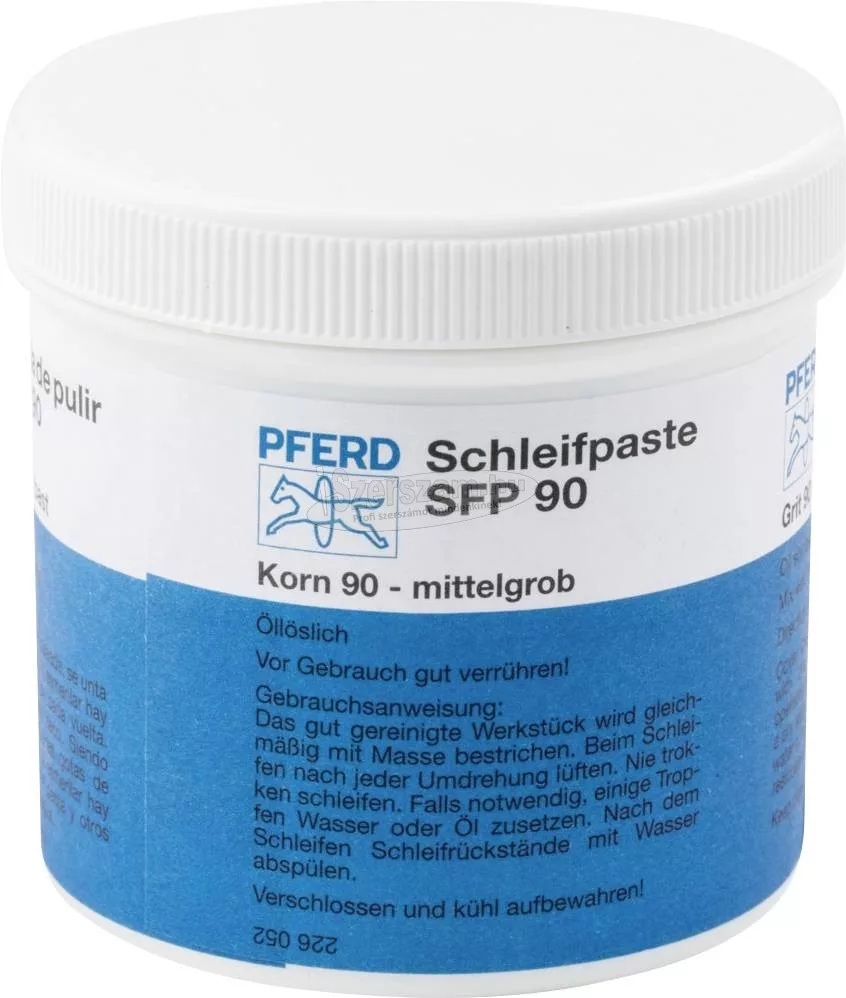 PFERD őrlő paszta. Olajban oldódó őrlőpaszták éles szélű SiC szemcsékkel. Meghajtótípusok:. - kézi használat. Alkalmazás:. - polírozás. - Fokozatosan finom csiszolás. Anyag:. - alumínium. - Kobalt alapú ötvözetek. - nikkel alapú ötvözetek (pl. Inconell és Hasteloy). - bronz. - titán. - titánötvözetek. - réz. - Sárgaréz. - rozsdamentes acél (INOX). - hőre lágyuló műanyagok. - Szálerősítésű hőre keményedő műanyagok (GRP, CFRP). - Edzett, edzett és edzett acélok 1200 N / mm2 felett (38 HRC felett). - 54 HRC -nél nagyobb keménységű acél anyagok. - Acélok 1200 N / mm2 -ig (<38 HRC). - öntött acél.