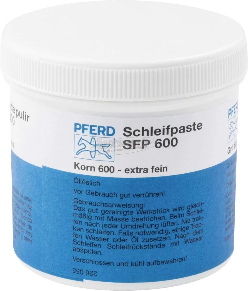 PFERD őrlő paszta. Olajban oldódó őrlőpaszták éles szélű SiC szemcsékkel. Meghajtótípusok:. - kézi használat. Alkalmazás:. - polírozás. - Fokozatosan finom csiszolás. Anyag:. - alumínium. - Kobalt alapú ötvözetek. - nikkel alapú ötvözetek (pl. Inconell és Hasteloy). - bronz. - titán. - titánötvözetek. - réz. - Sárgaréz. - rozsdamentes acél (INOX). - hőre lágyuló műanyagok. - Szálerősítésű hőre keményedő műanyagok (GRP, CFRP). - Edzett, edzett és edzett acélok 1200 N / mm2 felett (38 HRC felett). - 54 HRC -nél nagyobb keménységű acél anyagok. - Acélok 1200 N / mm2 -ig (<38 HRC). - öntött acél.
