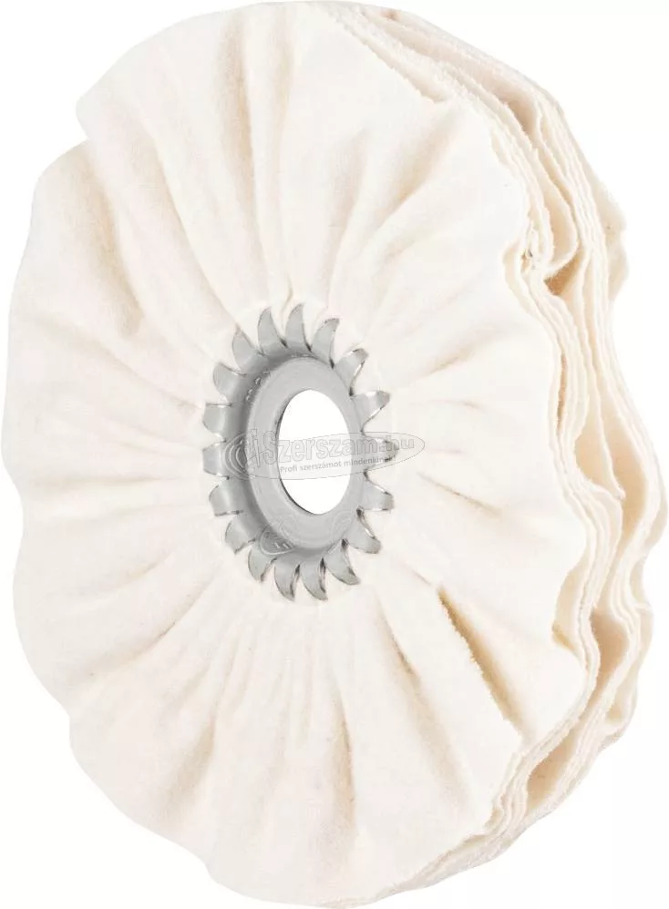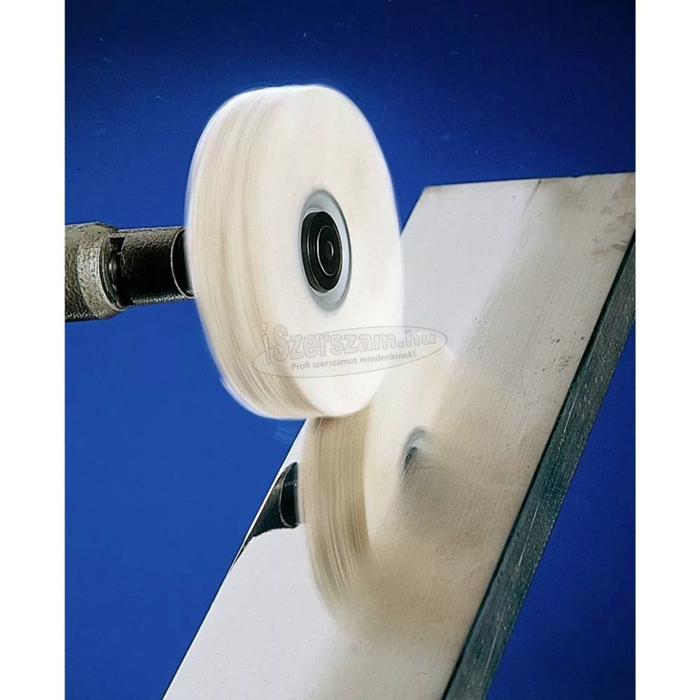 PFERD ruhás gyűrű. A kendőgyűrűket polírozó pasztákkal használják az előpolírozáshoz és a fényes polírozáshoz. Ha nagyon sima felületeket szeretne elérni, akkor több vagy akár az összes változatot egymás után kell használni. A szövetgyűrűk négyféle kivitelben kaphatók: ST (szizálszövet) = durva előpolírozás TH (kemény szövet) = előfényezésTW (puha szövet) = magasfényű lakkFL (flanel) = magasfényű lakk / ragyogás. Meghajtótípusok:. - Rugalmas tengelyhajtás. - egyenes daráló. Alkalmazás:. - polírozás. Ajánlott felhasználás:. - Acél és INOX előfényezése: ST vagy TH kendőgyűrűk PP 1 VP STEELOX polírozó pasztával. - Alumínium és sárgaréz előpolírozása: ST vagy TH kendőgyűrűk PP 2 VP ALU polírozó pasztával. -Színesfémek előpolírozása: ST vagy TH kendőgyűrűk polírozó pasztával PP 3 VP NEM FERROUS. - Fémek fényes polírozása: TW vagy FL kendőgyűrűk polírozó pasztával PP 4 HGP UNIVERSAL. - Műanyagok fényes polírozása: TW vagy FL kendőgyűrűk polírozó pasztával PP 5 HGP PLAST. - A TW és FL szövetgyűrűk az ajánlott 5–15 m / s vágási sebesség mellett érik el legjobb teljesítményüket. - Az ST és TH kivitelű szövetgyűrűk a legjobb teljesítményt érik el 10-15 m / s ajánlott vágási sebesség mellett. Anyag:. - alumínium. - Kobalt alapú ötvözetek. - nikkel alapú ötvözetek (pl. Inconell és Hasteloy). - bronz. - titán. - titánötvözetek. - réz. - Sárgaréz. - rozsdamentes acél (INOX). - hőre lágyuló műanyagok. - Szálerősítésű hőre keményedő műanyagok (GRP, CFRP). - Edzett, edzett és edzett acélok 1200 N / mm2 felett (38 HRC felett). - 54 HRC -nél nagyobb keménységű acél anyagok. - Acélok 1200 N / mm2 -ig (<38 HRC). - öntött acél.