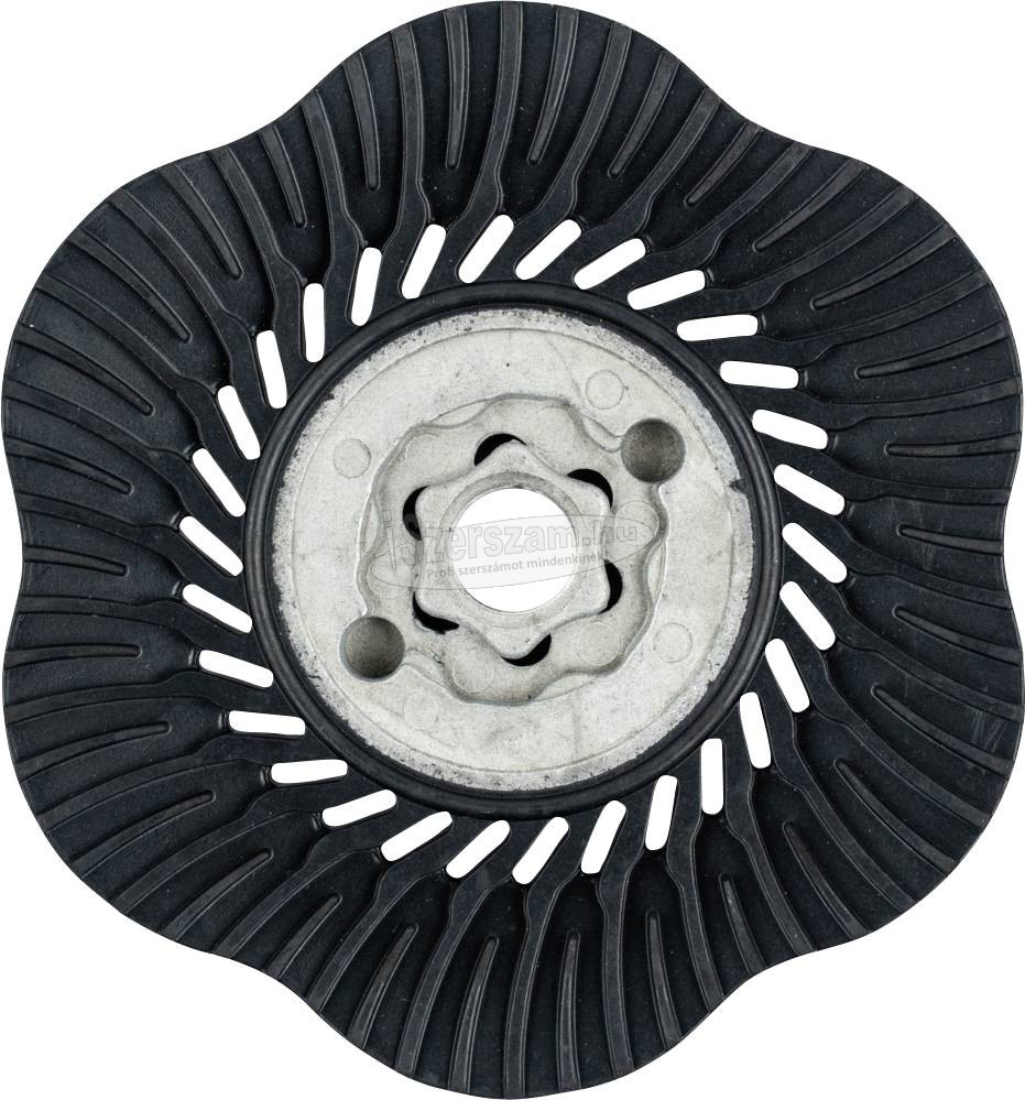 Változat: közepes. Maximális fordulatszám: 13300 / perc. Hajtástípusok: sarokcsiszoló; vezeték nélküli sarokcsiszoló. Biztonsági megjegyzés: A megengedett legnagyobb perifériás sebesség 80 m / s. 180 mm átmérőjű alátétpárnák esetén ügyelni kell arra, hogy az érintkezési nyomás ne legyen túl magasra választva, hogy megakadályozzák a hátlap túlfeszítését. Előnyök: Jelentősen csökkent hőterhelés a hűtőrések geometriájának köszönhetően. Magas gazdasági hatékonyság minimális szerszámcsere-idővel.