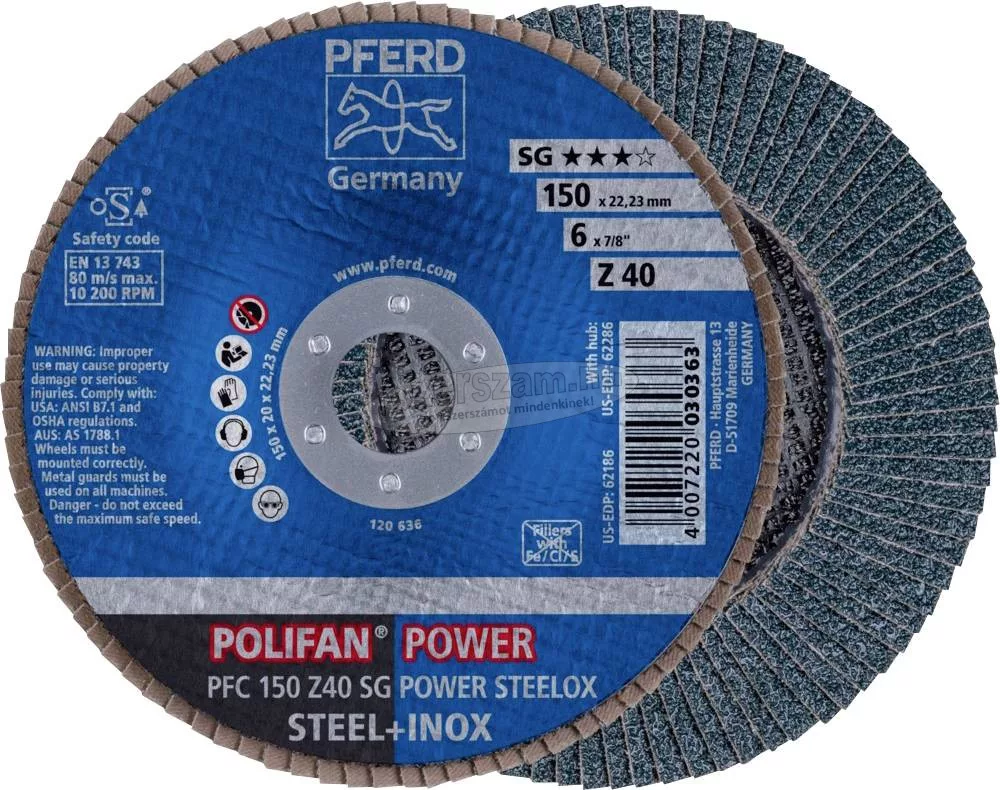 PFERD POLIFAN legyezőlapos csiszolókorong PFC 150 Z 40 SG POWER STEELOX 67784150