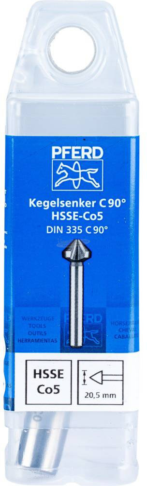 HSS süllyesztő HSSE DIN 335 C90 ° 20,5 mm. Nagy teljesítményű süllyesztőszerszámok 90 ° süllyesztőszöggel 90°-os süllyesztőcsavarokhoz különösen kemény és kemény anyagokhoz, például ötvözött és nagy szilárdságú acélhoz és rozsdamentes acélhoz (INOX). A 28 mm vagy annál nagyobb süllyesztő átmérõjű süllyesztők háromfelületi szárral rendelkeznek a megbízható nyomatékátvitel érdekében. Hosszú élettartam és hőálló kialakítás a Co tartalomnak köszönhetően.