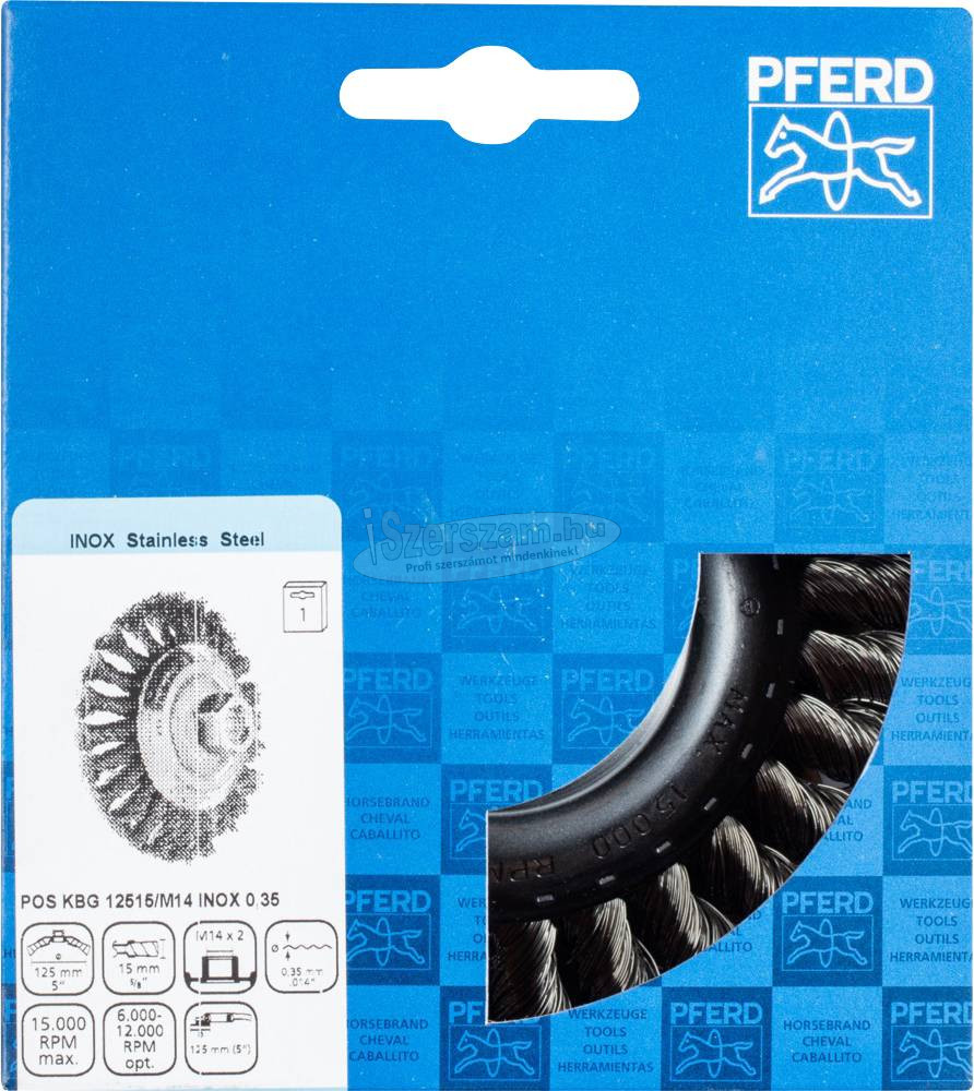 PFERD kúpos kialakítású kefe menettel, fonott POS KBG 12515/M14 INOX 0,35 43317003
