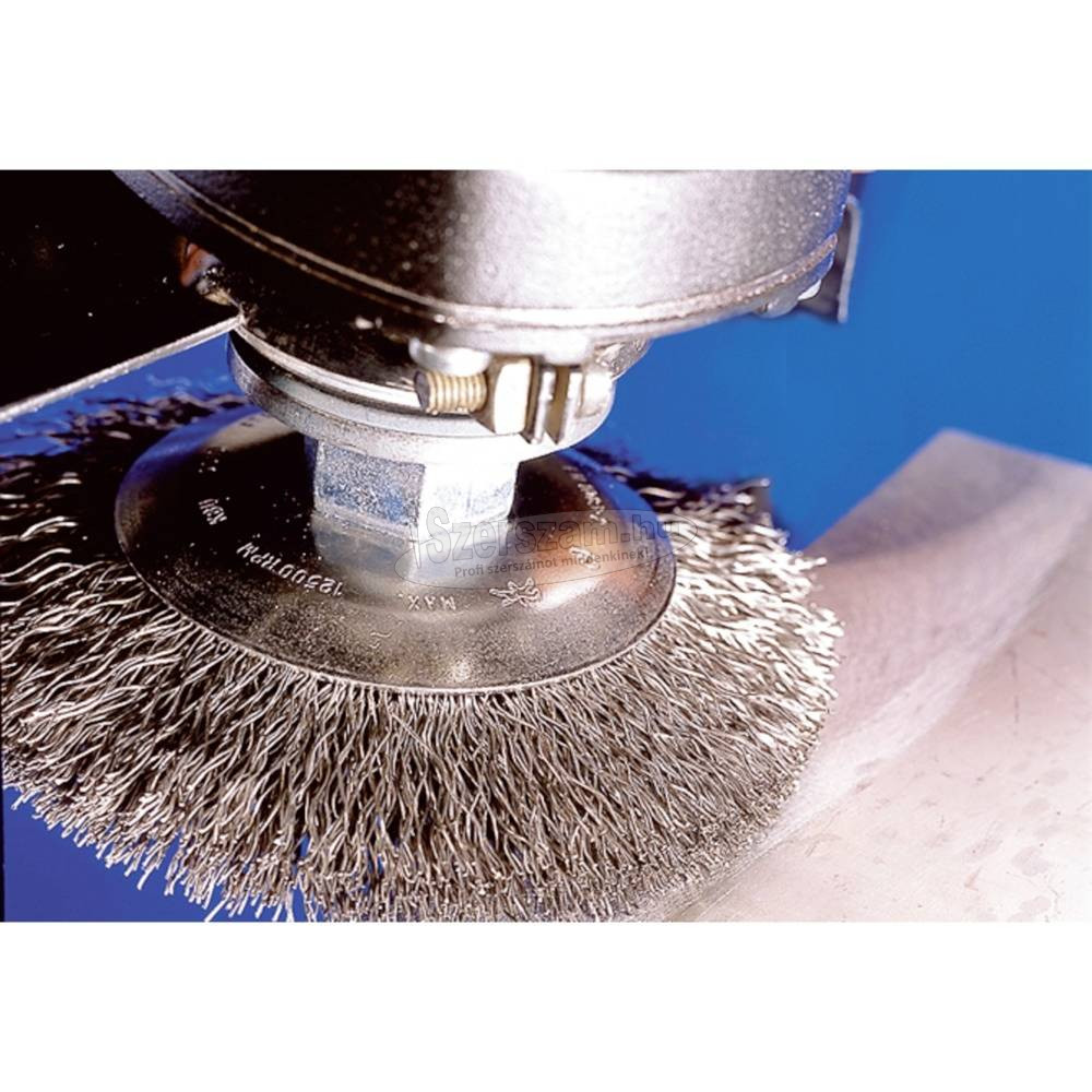 PFERD kúpos kefe. Kiválóan alkalmas közepesen nehéz ecsetelési munkákhoz, például sorjázáshoz, tisztításhoz és portalanításhoz. Meghajtótípusok:. - sarokcsiszoló. Alkalmazás:. - érdesítsd fel. - sorjázás. - Tiszta. - festék eltávolítása. - Rozsda eltávolítása. - Távolítsa el az oxid rétegeket. Ajánlott felhasználás:. - Használja az állítható sebességű sarokcsiszolókat az optimális eredmény érdekében. Anyag:. - öntöttvas. - Fa. - hőre keményedő műanyagok. - elasztomerek. - hőre lágyuló műanyagok. - Acél, öntött acél. A termék előnyei:. -Optimális hozzáférés a nehezen elérhető helyekhez, például a belső élekhez, barázdákhoz és hornyokhoz. - Alkalmas sarokcsiszolókhoz 80 m / s -ig. - Optimális alkalmazkodás a munkadarabok kontúrjához a nagy rugalmasságnak köszönhetően. - Finom felületeket hoz létre.