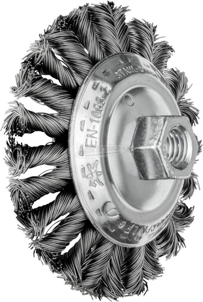 PFERD kúpos kefe. Nagyon agresszív ecset. Kiválóan használható nehéz kefés munkákhoz, például sorjázáshoz, tisztításhoz és portalanításhoz. Meghajtótípusok:. - sarokcsiszoló. Alkalmazás:. - sorjázás. - Tiszta. - festék eltávolítása. - Rozsda eltávolítása. - Vízkőmentesítés. - Távolítsa el az oxid rétegeket. - hegesztési varratfeldolgozás. - Filéhegesztés feldolgozása. - Gyökérvarrás feldolgozása. Ajánlott felhasználás:. - Erős sarokcsiszolókon használható az optimális eredmény érdekében. Anyag:. - öntöttvas. - Fa. - Acél, öntött acél. A termék előnyei:. -Optimális hozzáférés a nehezen elérhető helyekhez, például a belső élekhez, barázdákhoz és hornyokhoz. - A legnagyobb gazdasági hatékonyság a leghosszabb élettartam és az anyag eltávolítása révén. - Magas munkavégzési kényelem az egyenletes futásnak köszönhetően, az ecset visszarúgása nélkül. - Alkalmas sarkok és élek megmunkálására, mivel a fonatok nem csavarodnak ki annyira.