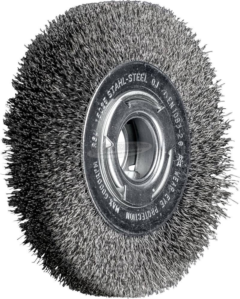 PFERD kerek kefe. Kiválóan alkalmas közepes súlyú ecseteléshez nagy munkadarabokon kézi és gépi használatra. Kifejezetten ipari használatra kifejlesztve. Meghajtótípusok:. - Rugalmas tengelyhajtás. - egyenes daráló. - Helyhez kötött gépek. - pad daráló. Alkalmazás:. - érdesítsd fel. - sorjázás. - Tiszta. - festék eltávolítása. - Rozsda eltávolítása. - Távolítsa el az oxid rétegeket. Anyag:. - öntöttvas. - Fa. - hőre keményedő műanyagok. - elasztomerek. - hőre lágyuló műanyagok. - Acél, öntött acél. A termék előnyei:. - Változtatható furatátmérőnek köszönhetően minden kereskedelmi forgalomban kapható álló hajtóműben és asztali köszörűgépben használható. - Nagy gazdasági hatékonyság a nagyon hosszú élettartamnak köszönhetően.