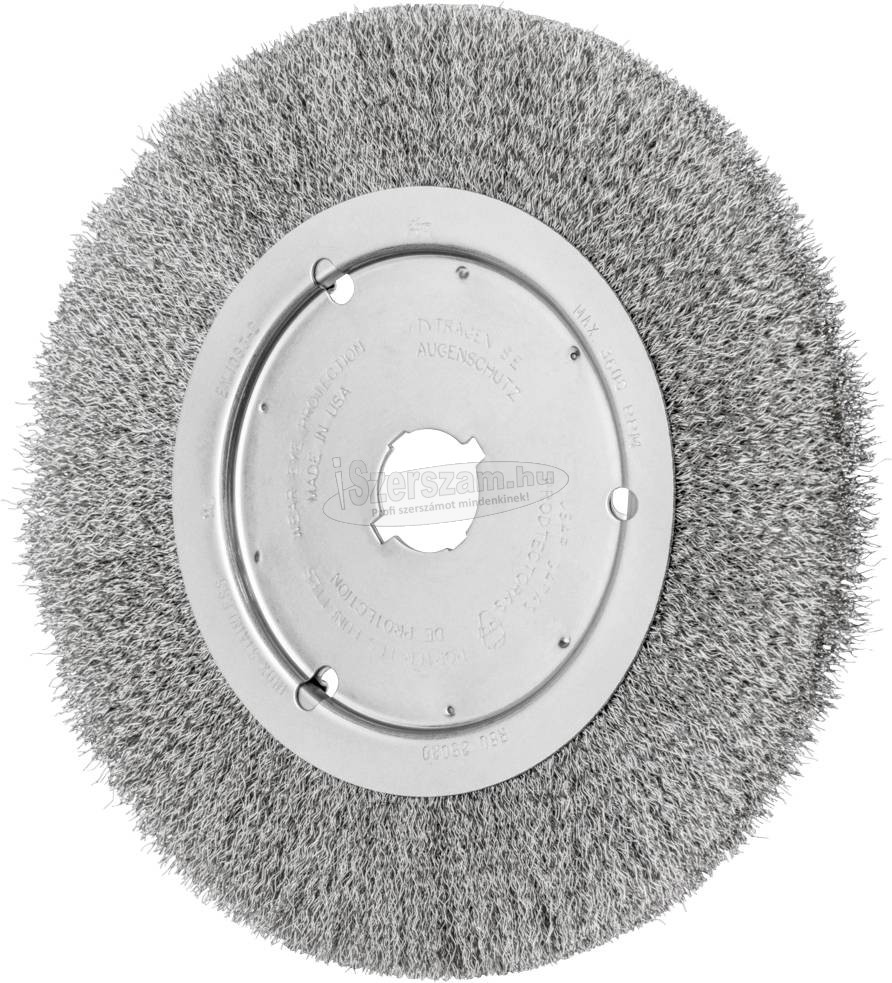 PFERD kerek kefe. Kiválóan alkalmas közepes súlyú ecseteléshez nagy munkadarabokon kézi és gépi használatra. Meghajtótípusok:. - Helyhez kötött gépek. Alkalmazás:. - érdesítsd fel. - sorjázás. - Tiszta. - Távolítsa el a szennyeződést. - festék eltávolítása. - Rozsda eltávolítása. - Távolítsa el az oxid rétegeket. Anyag:. - alumínium. - Egyéb színesfémek. - Magas hőmérsékletnek ellenálló anyagok. - Kobalt alapú ötvözetek. - nikkel alapú ötvözetek (pl. Inconell és Hasteloy). - Nikkel vagy titán alapú szuperötvözetek. - Kemény színesfém. - bronz. - titán. - titánötvözetek. - lágy titánötvözetek (szakítószilárdság 500 N / mm²). - rozsdamentes acél (INOX). A termék előnyei:. - Változtatható furatátmérőnek köszönhetően minden kereskedelmi forgalomban kapható álló hajtóműben és asztali köszörűgépben használható. - Zökkenőmentes csomagolás széles görgőkbe a különleges kialakításnak köszönhetően. - Optimális alkalmazkodás a munkadarabok kontúrjához a nagy rugalmasságnak köszönhetően.