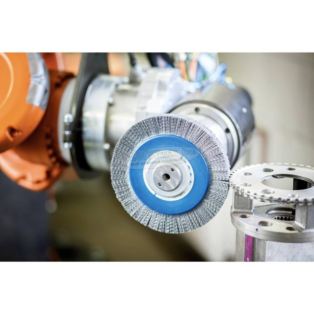 PFERD kerek kefe. Különösen agresszív ecset. A műanyag burkolatnak köszönhetően különösen alkalmas a nehezen megmunkálható alkatrészek, például hengerfejek vagy fogaskerekek sorjátlanítására. Kifejezetten ipari használatra kifejlesztve. Meghajtótípusok:. - Helyhez kötött gépek. - Robotok. - szerszámgép. Alkalmazás:. - érdesítsd fel. - sorjázás. - Tiszta. - Strukturálás (matt, matt és szatén felületkezelés). Ajánlott felhasználás:. - A CO töltőanyagot különösen agresszív használatra és a munkadarab kiváló felületminőségére használja. - A SiC burkolóanyaggal való agresszív használathoz válassza a REC (téglalap alakú burkolat) változatot. Anyag:. - alumínium. - Egyéb színesfémek. - Magas hőmérsékletnek ellenálló anyagok. - Kobalt alapú ötvözetek. - Kemény színesfém. - bronz. - rozsdamentes acél (INOX). - öntöttvas. - Fa. - hőre keményedő műanyagok. - hőre lágyuló műanyagok. - Acél, öntött acél. A termék előnyei:. - Hosszú élettartam és agresszív kefehatás a nagyon magas állománysűrűség miatt. - Rendkívül sima futás a töltőanyag egyenletes eloszlása miatt.