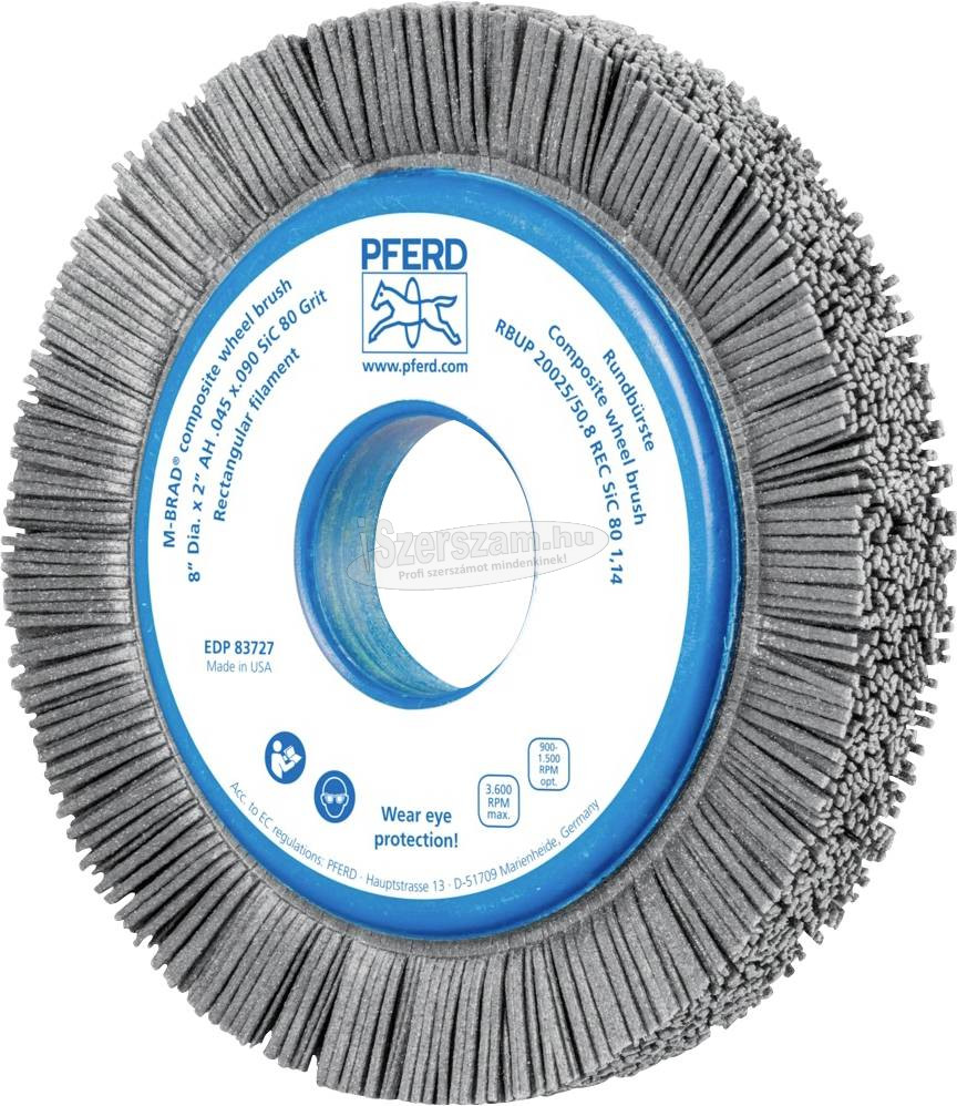 PFERD kerek kefe. Különösen agresszív ecset. A műanyag burkolatnak köszönhetően különösen alkalmas a nehezen megmunkálható alkatrészek, például hengerfejek vagy fogaskerekek sorjátlanítására. Kifejezetten ipari használatra kifejlesztve. Meghajtótípusok:. - Helyhez kötött gépek. - Robotok. - szerszámgép. Alkalmazás:. - érdesítsd fel. - sorjázás. - Tiszta. - Strukturálás (matt, matt és szatén felületkezelés). Ajánlott felhasználás:. - A CO töltőanyagot különösen agresszív használatra és a munkadarab kiváló felületminőségére használja. - A SiC burkolóanyaggal való agresszív használathoz válassza a REC (téglalap alakú burkolat) változatot. Anyag:. - alumínium. - Egyéb színesfémek. - Magas hőmérsékletnek ellenálló anyagok. - Kobalt alapú ötvözetek. - Kemény színesfém. - bronz. - rozsdamentes acél (INOX). - öntöttvas. - Fa. - hőre keményedő műanyagok. - hőre lágyuló műanyagok. - Acél, öntött acél. A termék előnyei:. - Hosszú élettartam és agresszív kefehatás a nagyon magas állománysűrűség miatt. - Rendkívül sima futás a töltőanyag egyenletes eloszlása miatt.