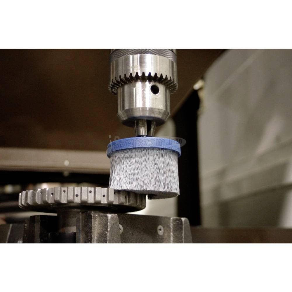 PFERD lemezkefe,. Különösen agresszív ecset. Különösen alkalmas sorjázáshoz és felületi megmunkáláshoz álló gépeken. Meghajtótípusok:. - Rugalmas tengelyhajtás. - egyenes daráló. - Helyhez kötött gépek. - Robotok. Alkalmazás:. - érdesítsd fel. - sorjázás. - Tiszta. - Strukturálás (matt, matt és szatén felületkezelés). Ajánlott felhasználás:. - A CO töltőanyagot különösen agresszív használatra és a munkadarab kiváló felületminőségére használja. - Távolítsa el a támasztógyűrűt, amint a kárpitozás le lett dolgozva a tartógyűrűre. Ily módon a fennmaradó készlet felszabadítható és teljesen felhasználható. -Nagy tágulási átmérő vagy nehezen elérhető helyek elérése érdekében a munka elején vegye le a tartógyűrűt. Anyag:. - alumínium. - Egyéb színesfémek. - Magas hőmérsékletnek ellenálló anyagok. - Kobalt alapú ötvözetek. - Kemény színesfém. - bronz. - rozsdamentes acél (INOX). - öntöttvas. - Fa. - hőre keményedő műanyagok. - hőre lágyuló műanyagok. - Acél, öntött acél. A termék előnyei:. - Hosszú élettartam és agresszív kefehatás a nagyon magas állománysűrűség miatt. - Rendkívül sima futás a töltőanyag egyenletes eloszlása miatt.