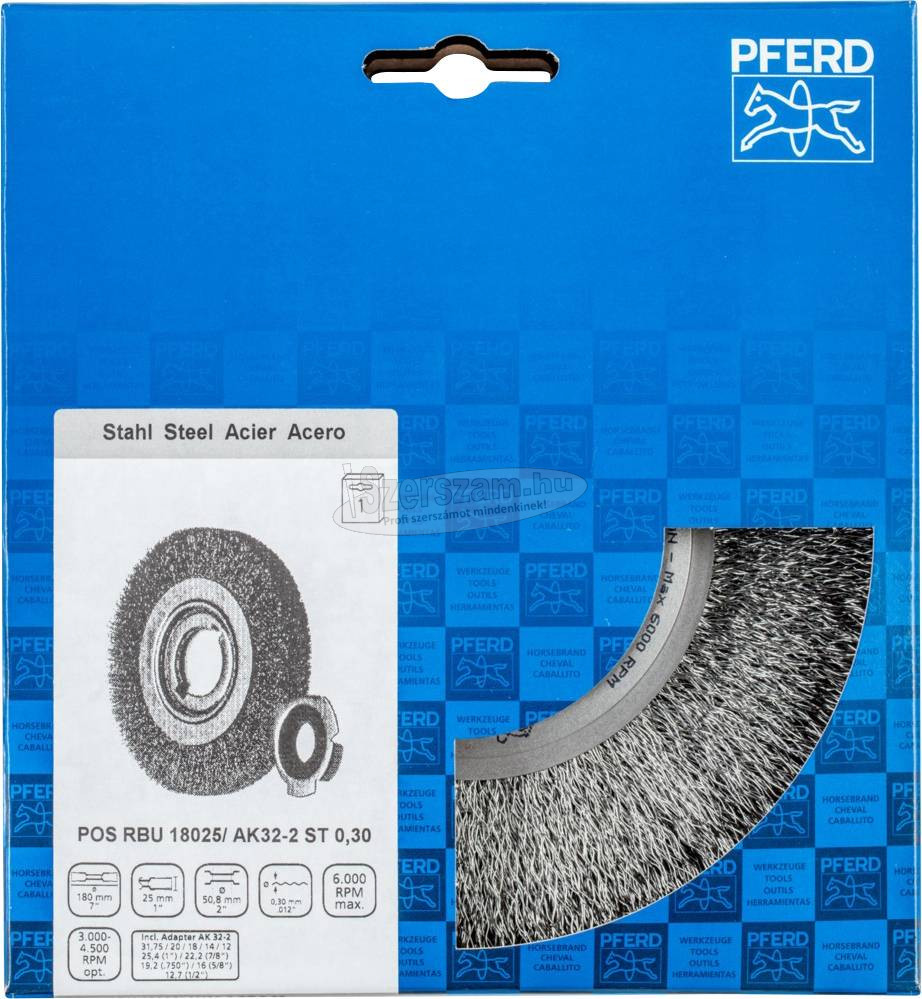 Kivitel: széles, kötetlen. A szegély szélessége: 25 mm. Kefe szálhossz: 40 mm. A kárpit anyaga: acél. Vágóanyag ø: 0,3 mm. Bo./adapter: AK 32-2. Optikai, Fordulatszám: 3000 ford / perc. Optikai, RPM-ig: 4500 RPM. Maximális fordulatszám: 6000 / perc. Súly: 0.84 kg. Megmunkálható anyagok: öntöttvas; fa; hőre keményedő műanyagok; elasztomerek; hőre lágyuló műanyagok; acél, öntött acél. Hajtástípusok: hajlékony tengelyhajtás; egyenes daráló; álló gépek; padlódaráló. Előnyök: A változó furatátmérőnek köszönhetően minden kereskedelemben kapható álló meghajtású gépen és padlódarálón használható.