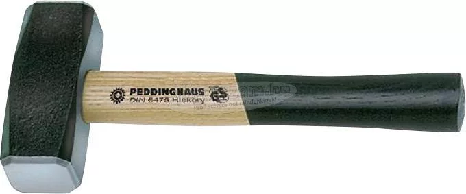 Kézi kalapács, DIN 6475 szerint. Kivitel: Kovácsolt minőségű. Gondosan edzve és megeresztve. DIN 17200 szerinti C 45-ös minőségi acélból. Fa nyéllel.