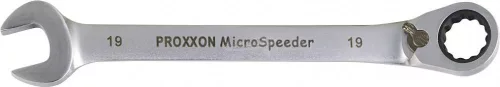 MICRO-Combispeeder-PROXXON. Jól használható csavarozáshoz sík felületen és ideális csapszegek csavarozásához is! Felülmúlhatatlan, ha szűk helyen kell dolgozni. 72 fogú, magasan ötvözött speciális acél belső gyűrűvel, a meghajtás 5°-os elmozdulásnál már működik. Messze a DIN/ ISO követelmény feletti nyomaték átvitelére képes. A 15°-os szög alatt álló fej átfordítása nem lehetséges. Főbb jellemzők: Jobb/bal átkapcsolás. 72 fogú finomfogazás. Kivitel: Jobb- és bal forgásirány átkapcsoló karral.