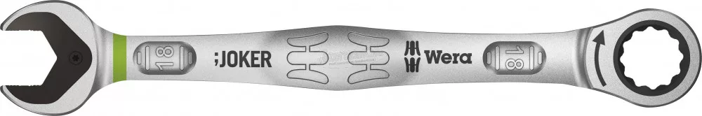 racsnis csillag-villáskulcs Joker. A Joker minden elképzelhető helyzetben gyorsan és precízen oldja meg a csavarozási feladatokat. A gyűrűs oldal racsnis mechanikája különösen finom fogazású, 80 foggal, ezért rugalmasan használható szűk helyeken. A speciális kovácsolási geometria, kombinálva a jó minőségű króm-molibdén acéllal és a nikkel-króm bevonat három pontban teszi igen előnyössé, ezek: az igen hosszú élettartam, a nagy kopásállóság és a tartósan magas fokú korrózióvédelem. Főbb jellemzők: Praktikus tartó funkciót biztosító fémlemezzel a pofában. Nincs szükség a kulcs átfordítására. Biztosan meghúzott csavarok, még nagy nyomatéknál is. Kivitel: Praktikus tartó funkciót biztosító fémlemezzel a pofában. Beépített végállás felütközéssel. Kettős hatlapú geometriával. Nikkel-króm korrózióvédő bevonattal. Igen kis lépésszöggel. Nem csúszik le.