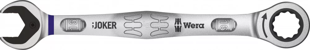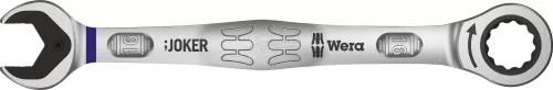 racsnis csillag-villáskulcs Joker. A Joker minden elképzelhető helyzetben gyorsan és precízen oldja meg a csavarozási feladatokat. A gyűrűs oldal racsnis mechanikája különösen finom fogazású, 80 foggal, ezért rugalmasan használható szűk helyeken. A speciális kovácsolási geometria, kombinálva a jó minőségű króm-molibdén acéllal és a nikkel-króm bevonat három pontban teszi igen előnyössé, ezek: az igen hosszú élettartam, a nagy kopásállóság és a tartósan magas fokú korrózióvédelem. Főbb jellemzők: Praktikus tartó funkciót biztosító fémlemezzel a pofában. Nincs szükség a kulcs átfordítására. Biztosan meghúzott csavarok, még nagy nyomatéknál is. Kivitel: Praktikus tartó funkciót biztosító fémlemezzel a pofában. Beépített végállás felütközéssel. Kettős hatlapú geometriával. Nikkel-króm korrózióvédő bevonattal. Igen kis lépésszöggel. Nem csúszik le.