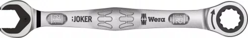 racsnis csillag-villáskulcs Joker. A Joker minden elképzelhető helyzetben gyorsan és precízen oldja meg a csavarozási feladatokat. A gyűrűs oldal racsnis mechanikája különösen finom fogazású, 80 foggal, ezért rugalmasan használható szűk helyeken. A speciális kovácsolási geometria, kombinálva a jó minőségű króm-molibdén acéllal és a nikkel-króm bevonat három pontban teszi igen előnyössé, ezek: az igen hosszú élettartam, a nagy kopásállóság és a tartósan magas fokú korrózióvédelem. Főbb jellemzők: Praktikus tartó funkciót biztosító fémlemezzel a pofában. Nincs szükség a kulcs átfordítására. Biztosan meghúzott csavarok, még nagy nyomatéknál is. Kivitel: Praktikus tartó funkciót biztosító fémlemezzel a pofában. Beépített végállás felütközéssel. Kettős hatlapú geometriával. Nikkel-króm korrózióvédő bevonattal. Igen kis lépésszöggel. Nem csúszik le.