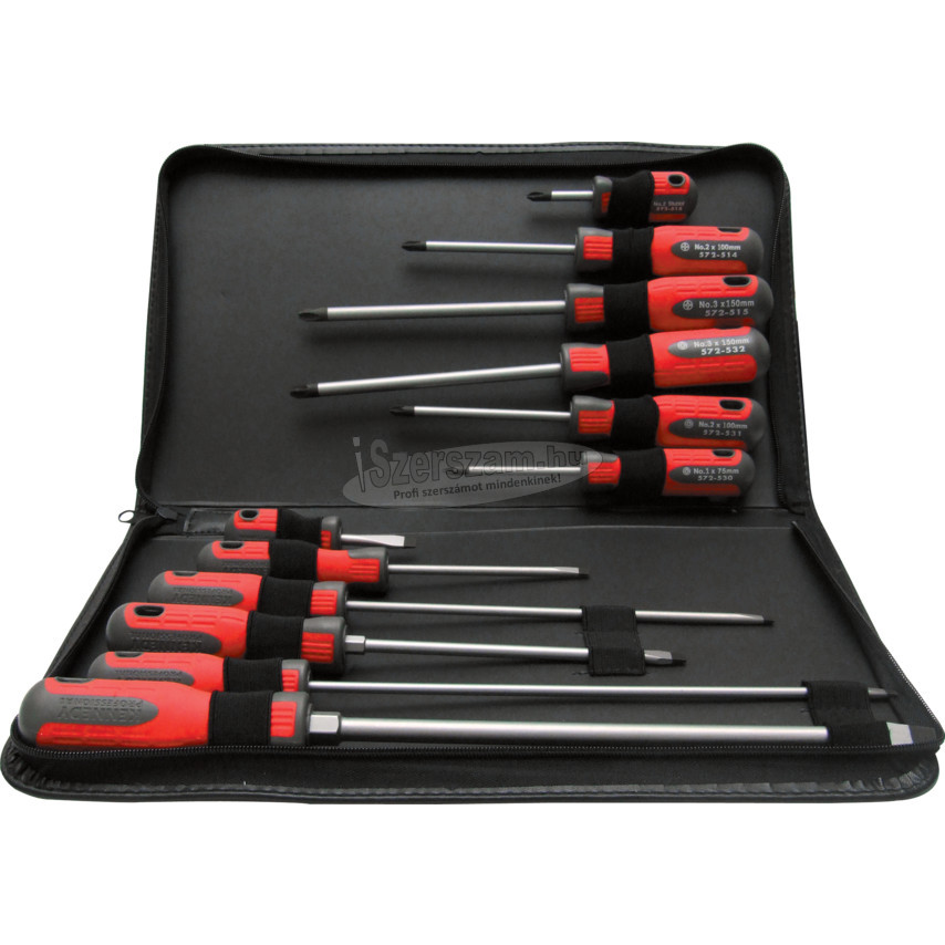KENNEDY 12 DB-OS PRO-TORQ CSAVARHÚZÓ KÉSZLET KEN5726020K. Speciális króm-vanádium acélból készült penge mágneses éllel. Egyedülálló, háromszög keresztmetszetű, két komponensű erős markolat. A beépített puha zónák megkönnyítik a nyomaték átvitelét. Tárolást könnyítő akasztó lyukkal a markolat végén.