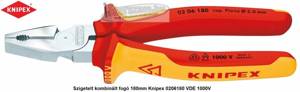 KNIPEX Szigetelt egyetemes fogó, kétkomponensű nyél 1000V 180mm 206 180. Szigetelt egyetemes fogó, erő, kétkomponensű nyél 1000V.