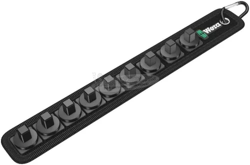 B öv (textil öv), 9 rész, üres. Robosztus textilszíj (öv) a tipikus Wera kivitelben 9 anya (3/8") számára zárt térben. A sima fordítószerkezet biztosítja az anyák biztonságos rögzítését és könnyű eltávolítását. Tartalékhoroggal rendelkezik az övhurkokhoz vagy -zsákokhoz történő rögzítéshez. Nem szövött hátul és tépőzáras szalagok révén könnyen rögzíthető pl. Falra, polcra, műhelykocsira és a Wera 2go szerszámszállító rendszerre. Ez a szöveg gépi fordítással készült. Szállítás: Tépőzáras szalagok 30 x 200 mm.