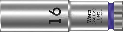 8790 HMC Mélykulcs-kulcs 1/2"-es meghajtással. Hosszú 1/2"-es kéz- és gépaljzat-betét (ISO 2725, 3. rész) gömbfogó horonyval; külső hatszögletű csavarokhoz és anyákhoz. Kézi és gépi működéshez (ütés nélküli), még alacsony fekvésű csavarozott csatlakozásokkal és kiálló, menetes rudakkal is. A Take it easy szerszámkeresővel, színkódolással méret szerint - a kívánt szerszám könnyű és gyors megtalálásához. Könnyen megragadható még olajos kézzel is. A hatszögletű profil lehetővé teszi a nagy erők továbbítását, és az anya vagy a csavarfej széleit tizenkét élű profilnál kevesebbre terheli. A finoman fogazott racsnisok a tizenkét élű profil használatát feleslegessé teszik, még szűk helyeken is, a hátsó kis elfordulási szögnek köszönhetően. Ez a szöveg gépi fordítással készült. Kivitel: Hosszú csavarkulcsok az alacsony fekvésű csavarozott csatlakozásokhoz, és néha a menetes rudak szűk helyekre történő kitolására is. A hatszögletű profil lehetővé teszi a pontos csavarozást nagyteljesítményű átvitellel és máris a profilt. Szerszám-keresővel Könnyű: színkódolás méret szerint. A hátsó sarokcsavarozás a nagy tapadásért kézi működtetésnél. Kézi és gépi működéshez (ütés nélküli) gömbfogó horonyval.