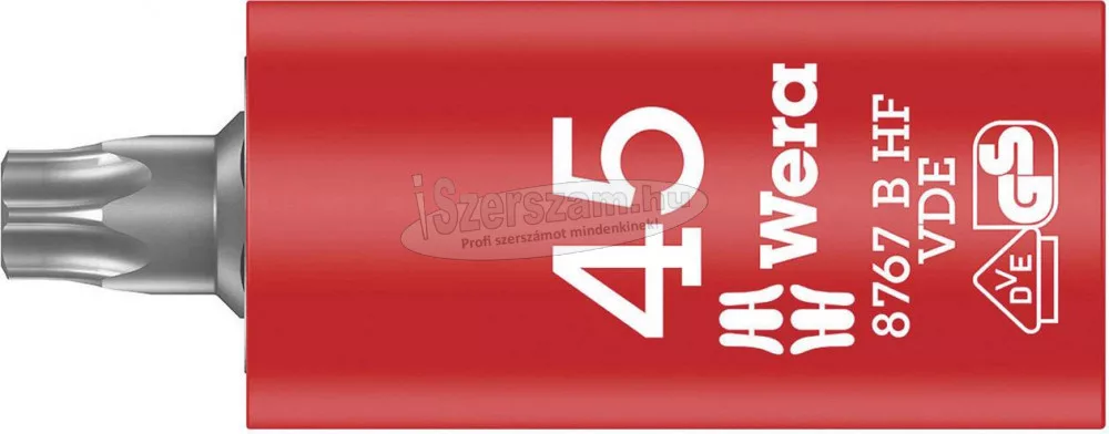 8767 B VDE HF TORX® Zyklop Bitnut, szigetelt, 3/8"hajtással, tartás funkcióval. VDE 3/8"bitnut tartó funkcióval a különösen kényelmes csavarozáshoz, csökkentve a csavarveszteség kockázatát a munkadarab adagolásakor. A sárga szigetelőmag révén fokozott biztonsággal, amely láthatóvá válik a külső piros VDE szigetelőréteg károsodása esetén. Darabban tesztelt szerszám IEC 60900 10000V feszültséggel, biztonságos működéshez jóváhagyott 1000 V feszültségnél Ez a szöveg gépi fordítással készült. Kivitel: Darabban tesztelt szerszám IEC 60900 10000V feszültséggel, biztonságos munkavégzésig 1000 V feszültségig. Rendkívül rövid és kompakt VDE bit-anya 3/8"a könnyű munka érdekében, még nagyon szűk helyeken is. Nagyobb biztonság a kétkomponensű szigetelés miatt, a sárga szigetelőmaggal a piros szigetelőréteg alatt. A tartó funkció biztonságosan rögzíti a csavarokat a szerszámon. A műanyag bevonat megvédi a felületeket a sérülésektől.