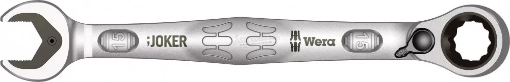 Dugattyúkulcs SW 15 mm. Minden elképzelhető helyzetben a Joker gyorsan és precízen oldja meg a csavarozási feladatokat. Ratchet kivételesen magas fogakkal, 80 fogakkal és váltókarral az egyszerű irányváltáshoz. A speciális kovácsolási geometria, kombinálva a jó minőségű króm-molibdén acéllal és a nikkel-króm bevonat három pontban teszi igen előnyössé, ezek: az igen hosszú élettartam, a nagy kopásállóság és a tartósan magas fokú korrózióvédelem. Színkódolással és kovácsolt méretjelzéssel a kívánt joker könnyű megtalálásához. Ez a szöveg gépi fordítással készült. Kivitel: Tartófunkció a pofában lévő fémlapnak köszönhetően. Beépített végütköző. Hatlap geometria. Nikkel-króm bevonat a nagyfokú korrózió elleni védelemhez. színkód-. A gyűrű oldala 15 ° -on van megforgatva.