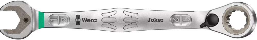 Joker Switch Maul gyűrűs racsnis kulcs, angolszász, megfordítható, 1/2"x 171 mm. Joker racsnis kulcs, szögletes racsnis oldallal és váltókarral. Fémlemez által a szájban tartó funkcióval, amely csökkenti a csavarok és anyák elvesztésének kockázatát. Az integrált végütköző megakadályozza a lecsúszást a csavar fejéből, és lehetővé teszi a nagy nyomatékok alkalmazását. A szájban lévő cserélhető fémlemez extra kemény fogakkal és anyákkal rögzíti, és csökkenti a csúszás kockázatát. A dupla-hex geometria biztosítja a pozitív kapcsolatot a csavarral vagy anyával, és így csökkenti a lecsúszás veszélyét is. A száj oldalán az alacsony visszatérési szög, csupán 30 °, elkerüli a kulcs időigényes elfordítását csavarozáskor. A gyűrűoldalon lévő, nagy finom fogazású (80 fogak) kapcsolható racsnismechanizmus nagyfokú rugalmasságot biztosít még zárt térben is. Hallható precíziós racsnis mechanizmus. A robusztus kétrészes reteszelőelem szintén rendkívüli stabilitást tesz lehetővé. A racsnis oldalával 15 ° -os szöget zár be a biztonságos munka érdekében, nagy nyomatékokkal. A speciális kovácsolási geometria biztosítja a nagy nyomatékátadást és a nagy hajlítási merevséget. Nagyteljesítményű króm-molibdén acélból, nikkel-króm bevonattal a magas korrózióvédelem érdekében. " Könnyen" szerszámkeresővel: Színkódolás méret szerint.