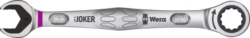 Villás- és gyűrűs racsnis kulcs Joker. A Joker minden elképzelhető helyzetben gyorsan és precízen oldja meg a csavarozási feladatokat. A gyűrűs oldal racsnis mechanikája különösen finom fogazású, 80 foggal, ezért rugalmasan használható szűk helyeken. A speciális kovácsolási geometria, kombinálva a jó minőségű króm-molibdén acéllal és a nikkel-króm bevonat három pontban teszi igen előnyössé, ezek: az igen hosszú élettartam, a nagy kopásállóság és a tartósan magas fokú korrózióvédelem. Főbb jellemzők: Praktikus tartó funkciót biztosító fémlemezzel a pofában. Nincs szükség a kulcs átfordítására. Biztosan meghúzott csavarok, még nagy nyomatéknál is. Kivitel: Praktikus tartó funkciót biztosító fémlemezzel a pofában. Beépített végállás felütközéssel. Kettős hatlapú geometriával. Nikkel-króm korrózióvédő bevonattal. Igen kis lépésszöggel. Nem csúszik le.